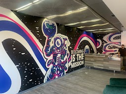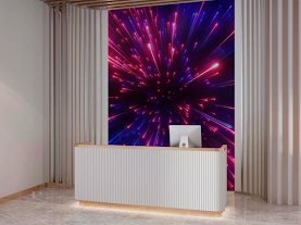 This striking mural printed by Platon Graphics adorns the lobby of the Jet Propulsion Laboratories. Its vibrant colors, cosmic imagery, and futuristic designs create an immersive atmosphere that reflects the laboratory's mission of space exploration and cutting-edge technology.